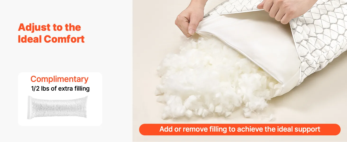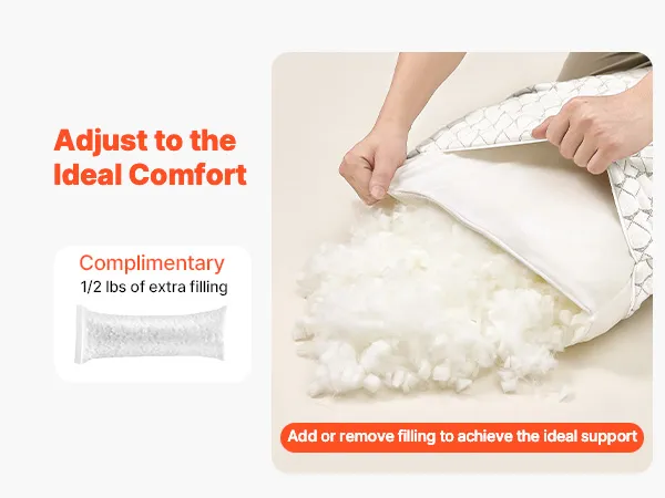 Regulowany komfort: Ta poduszka do łóżka w rozmiarze queen-size jest wypełniona wysokiej jakości pianką memory foam, która dopasowuje się do kształtu szyi, zapewniając optymalne podparcie. Dodatkowe 0,22 kg wypełnienia pozwala na regulację wysokości i twardości, zapewniając indywidualny komfort.
