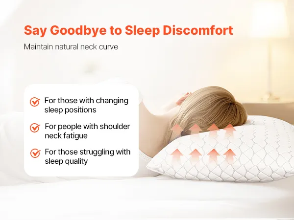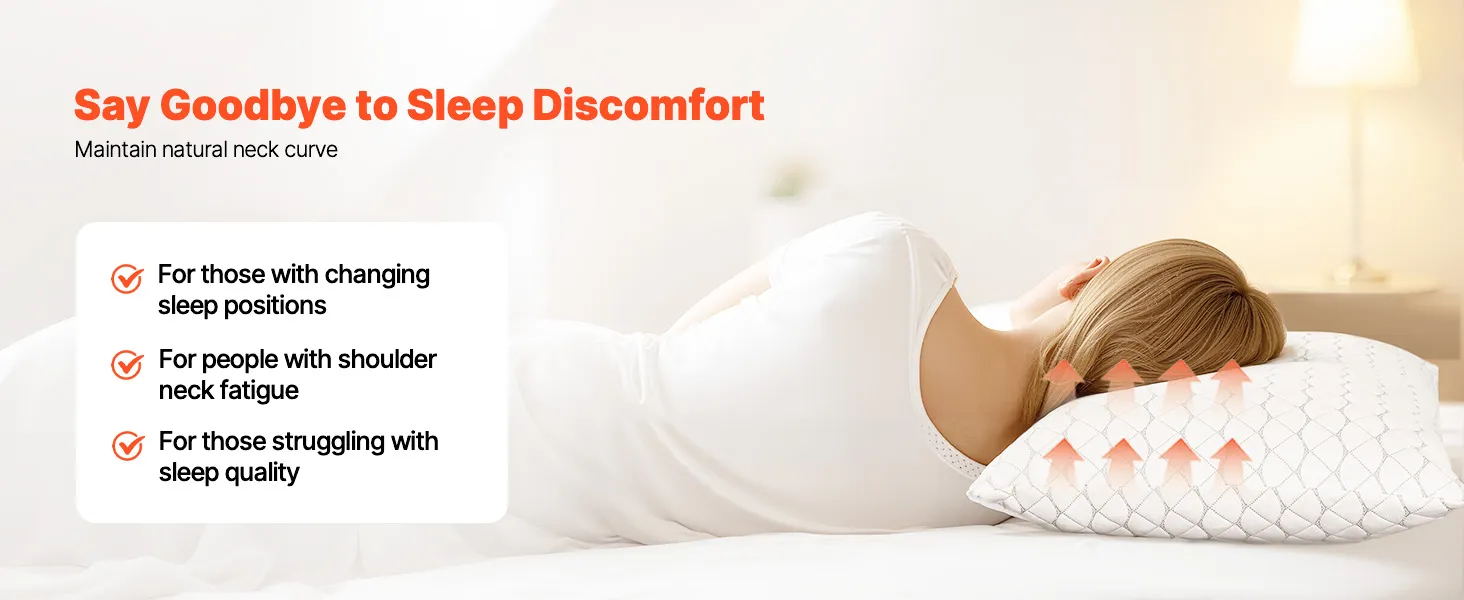 Nasza poduszka do spania zachowuje naturalne wygięcie szyi, łagodzi punkty nacisku i pomaga przy zmianie pozycji podczas snu, zmęczeniu szyi i słabej jakości snu, zapewniając spokojny sen.