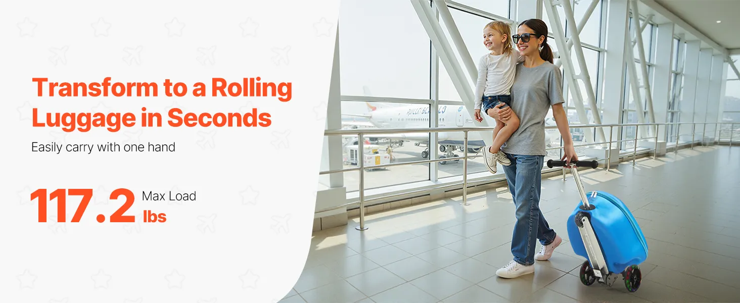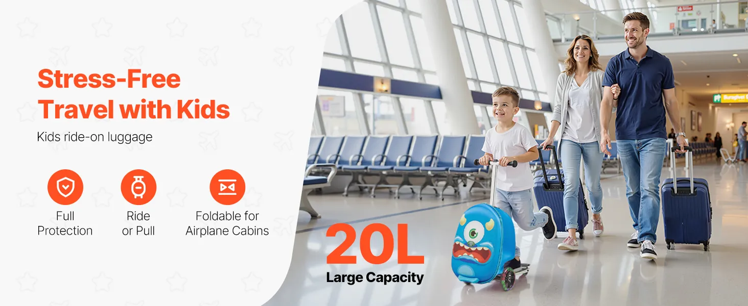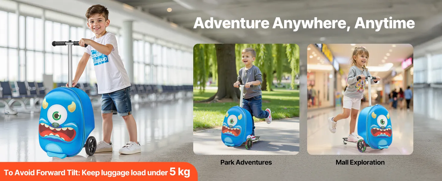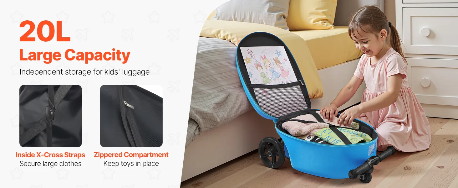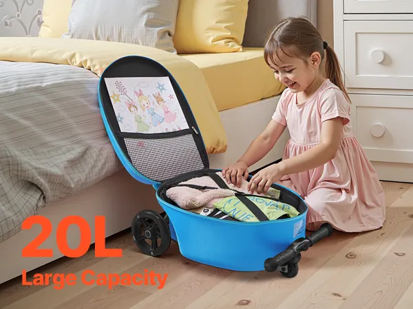 Ta walizka na skuter to prawdziwy game-changer! To zarówno zabawka, jak i walizka, idealna do przechowywania ubrań i zabawek. Dzięki składanej konstrukcji i rozmiarowi bagażu podręcznego idealnie nadaje się na lotnisko i przejażdżki samochodem z całą rodziną!