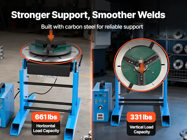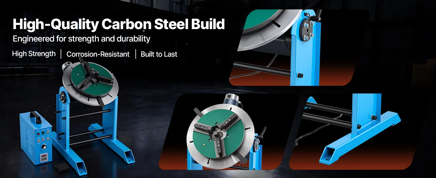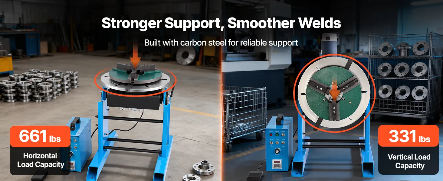 Wysoka nośność: Ten obrotowy pozycjoner spawalniczy obsługuje obciążenia do 300 kg (661 funtów) w poziomie i 150 kg (331 funtów) w pionie. Wysokiej jakości konstrukcja ze stali węglowej zapewnia stabilną pracę nawet podczas wymagających prac spawalniczych.
