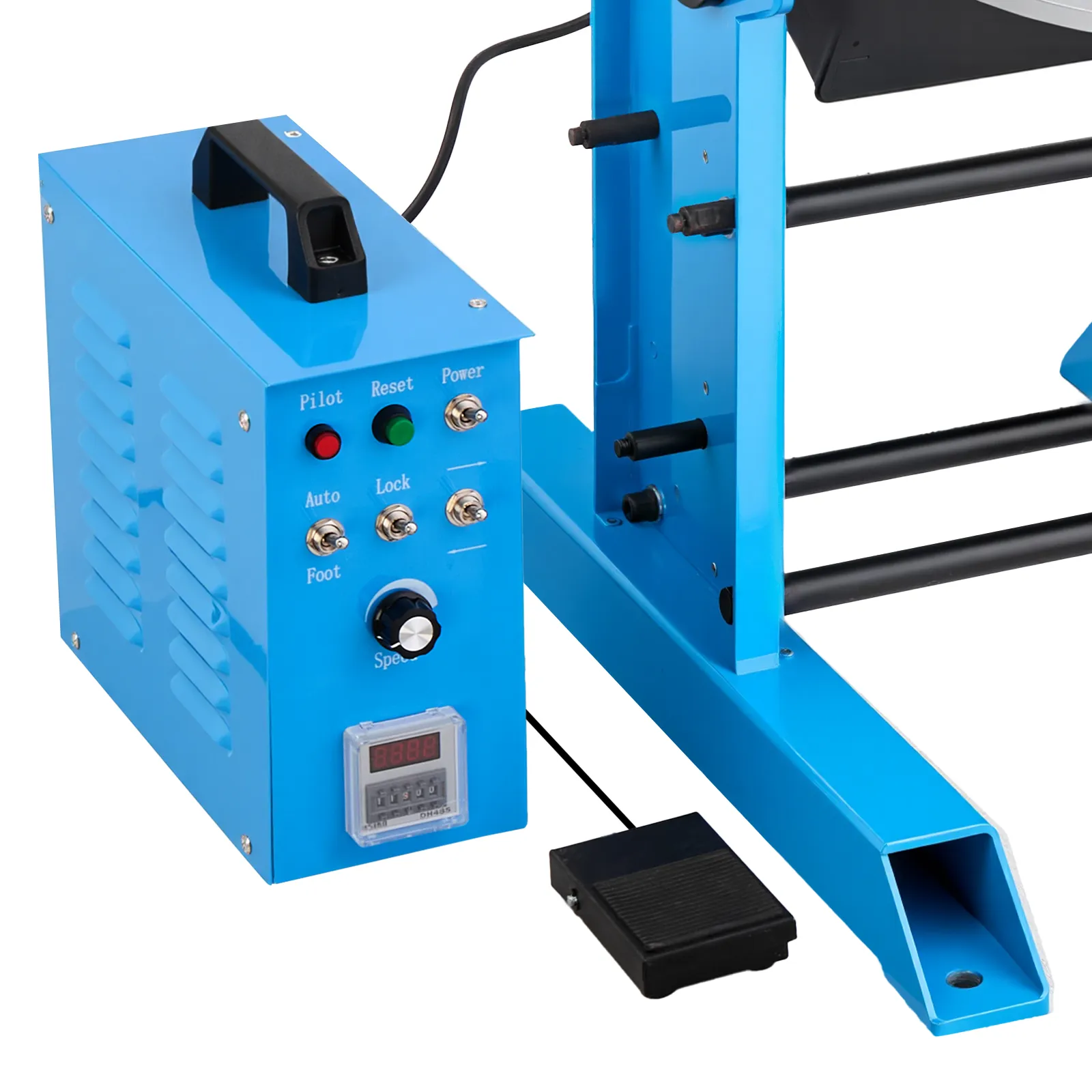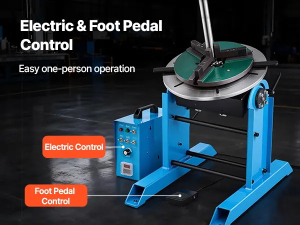 Elastyczne i łatwe sterowanie: Nasza maszyna ze stołem obrotowym i pozycjonerem wyposażona jest w sterowanie elektryczne i przełącznik nożny, co zapewnia łatwą obsługę bez użycia rąk. Zwiększa to wydajność spawania i zmniejsza zmęczenie operatora.