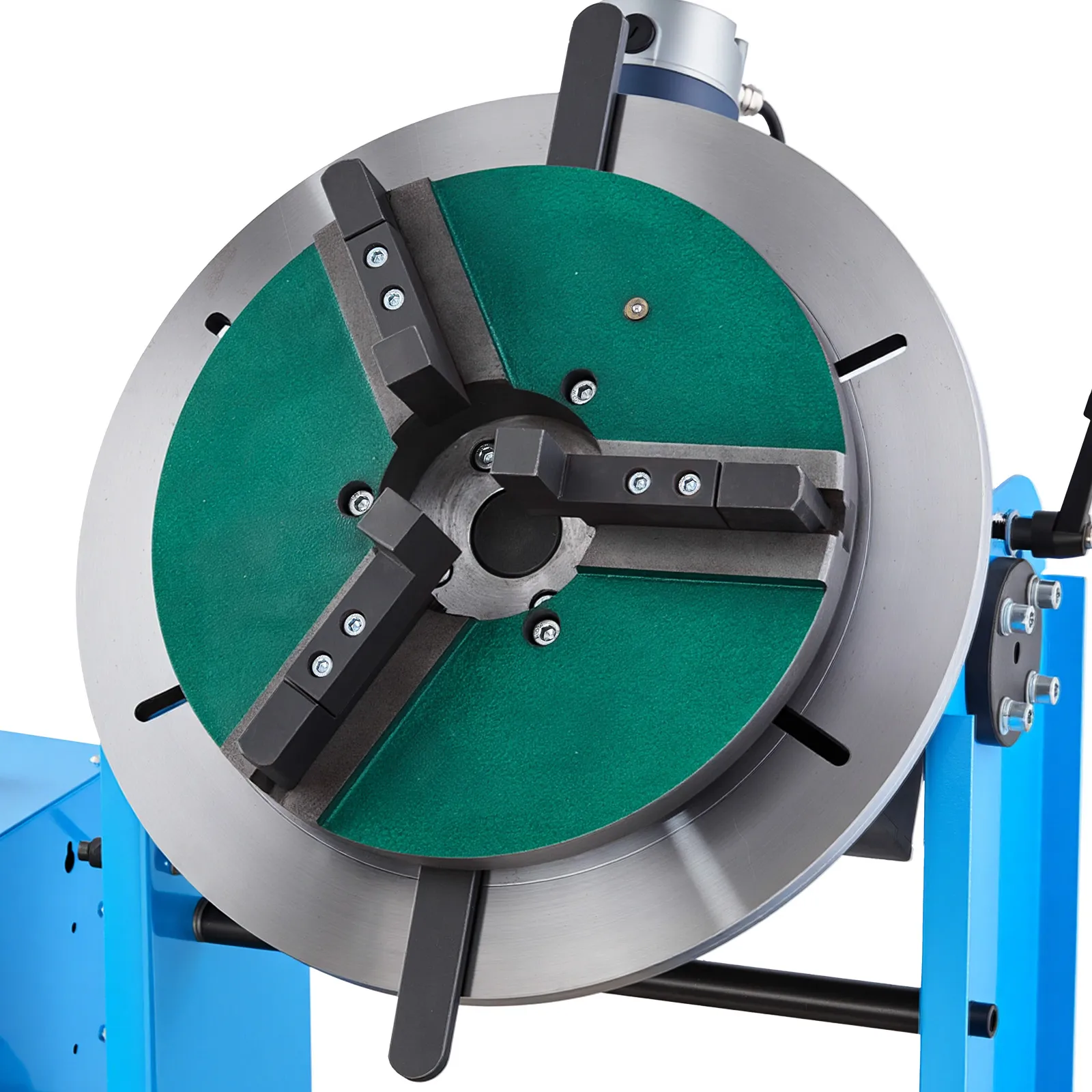 Regulowany uchwyt pozycjonera stołu obrotowego spawalniczego o zakresie 0,4–15,8 cala (10,16–401,32 mm) pewnie trzyma szeroką gamę elementów obrabianych, umożliwiając stabilne i precyzyjne spawanie.