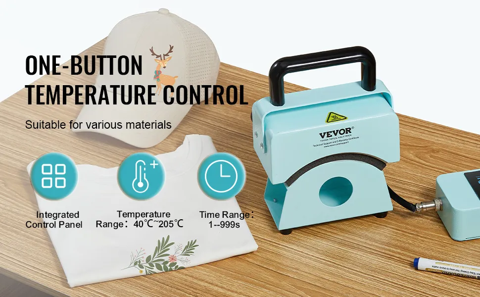 Różne ustawienia temperatury dla różnych materiałów. Prasa do czapek z łatwością przetwarza różne temperatury, od niskich do wysokich, za pomocą jednego przycisku, co zapewnia precyzyjne prasowanie.