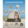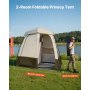VEVOR Namiot prysznicowy z 2 pomieszczeniami, namiot toaletowy (250x122x218 cm) z ekranem prywatności, namiot do przewijania z kołkami, linami, torbą transportową i poprzeczką, wykonany z tkaniny Oxford 150D, idealny na kemping, plażę, wędkowanie, kolor khaki