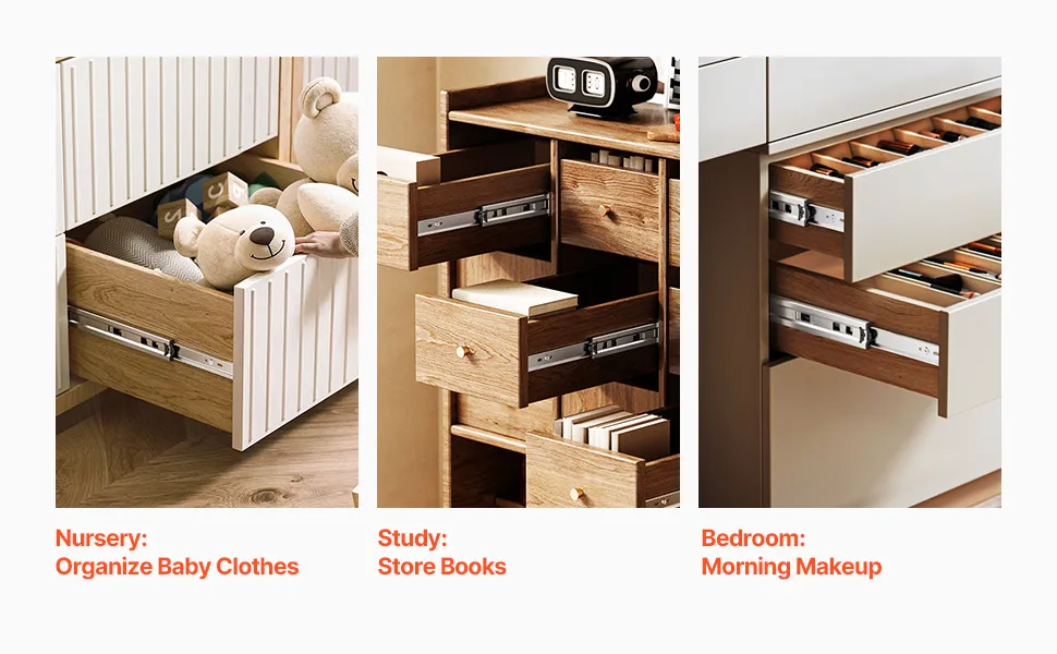 Dzięki funkcji cichego zamykania, drążki na ubrania gwarantują, że Twoje dziecko nie zostanie zakłócone podczas snu. Nadają się do różnych zastosowań, takich jak pokój dziecięcy do przechowywania ubrań, domowe biuro do przechowywania książek lub sypialnia do nakładania makijażu, zapewniając ciszę i wygodę.