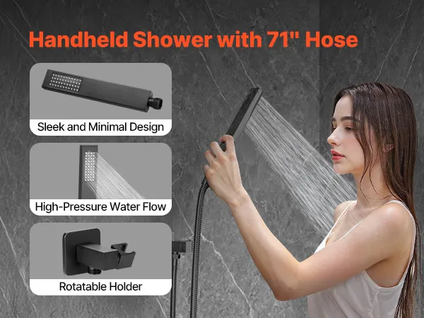 Regulowana ręczna głowica prysznicowa: Ergonomiczna ręczna głowica prysznicowa wygodnie leży w dłoni. Dzięki 1,8-metrowemu (71 cali) wężowi ze stali nierdzewnej idealnie nadaje się do czyszczenia zwierząt domowych, niemowląt i trudno dostępnych miejsc. Regulowany uchwyt pozwala na ustawienie prysznica pod dowolnym kątem.