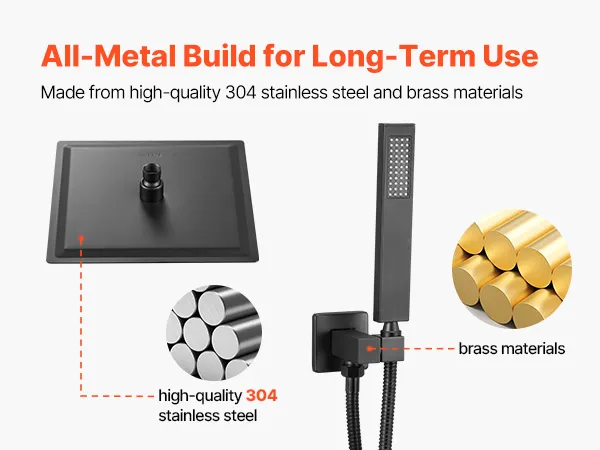 Solidna, całkowicie metalowa konstrukcja: Ten zestaw baterii prysznicowej, wykonany z trwałej stali nierdzewnej, mosiądzu i stopu cynku, jest odporny na odciski palców i zacieki. Jest łatwy w czyszczeniu i dodaje elegancji każdej łazience – idealny do apartamentów, hoteli i pensjonatów.