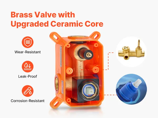 Łatwa kontrola temperatury i ochrona przed poparzeniem: Wysokiej jakości mosiężny zawór mieszający umożliwia szybką i równomierną regulację temperatury oraz zapobiega poparzeniom. Ceramiczna wkładka zaworu gwarantuje długotrwałą trwałość i zapobiega wyciekom lub uszkodzeniom z upływem czasu.