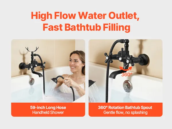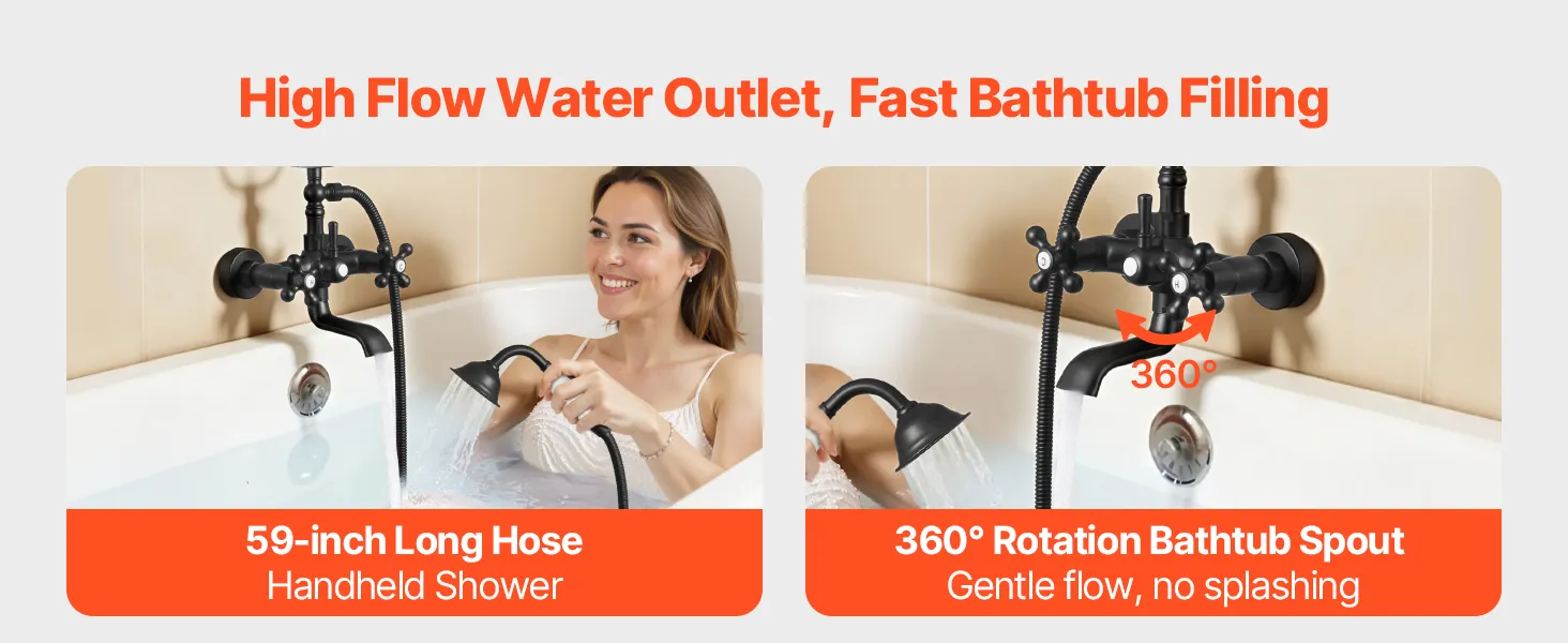 Bateria wannowa VEVOR z nóżkami pazurowymi, montowana na ścianie, z prysznicem ręcznym, bateria wannowa w stylu vintage z regulowanymi ramionami obrotowymi i wylewką obrotową 360°, zestaw baterii prysznicowej, zestaw do napełniania wanny, matowa czerń