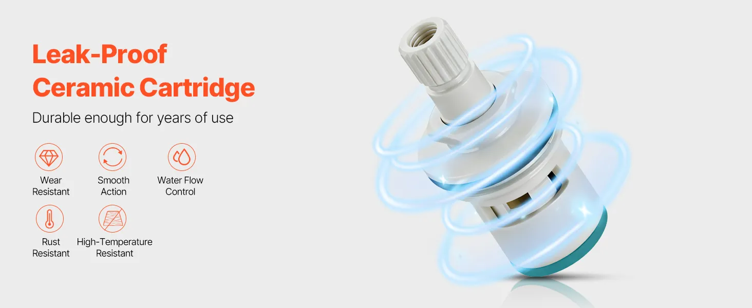 Nasz ścienny kran wannowy jest wyposażony w wysokiej jakości ceramiczne głowice, które zapewniają szczelne uszczelnienie zapobiegające przeciekom, a jednocześnie są odporne na zużycie i wysokie temperatury. Częste, codzienne użytkowanie nie wpływa na jego płynne działanie ani stały przepływ wody.