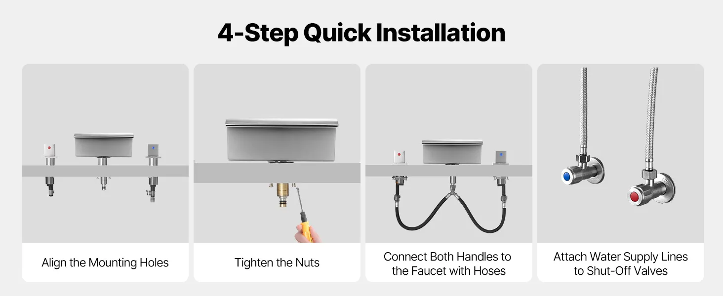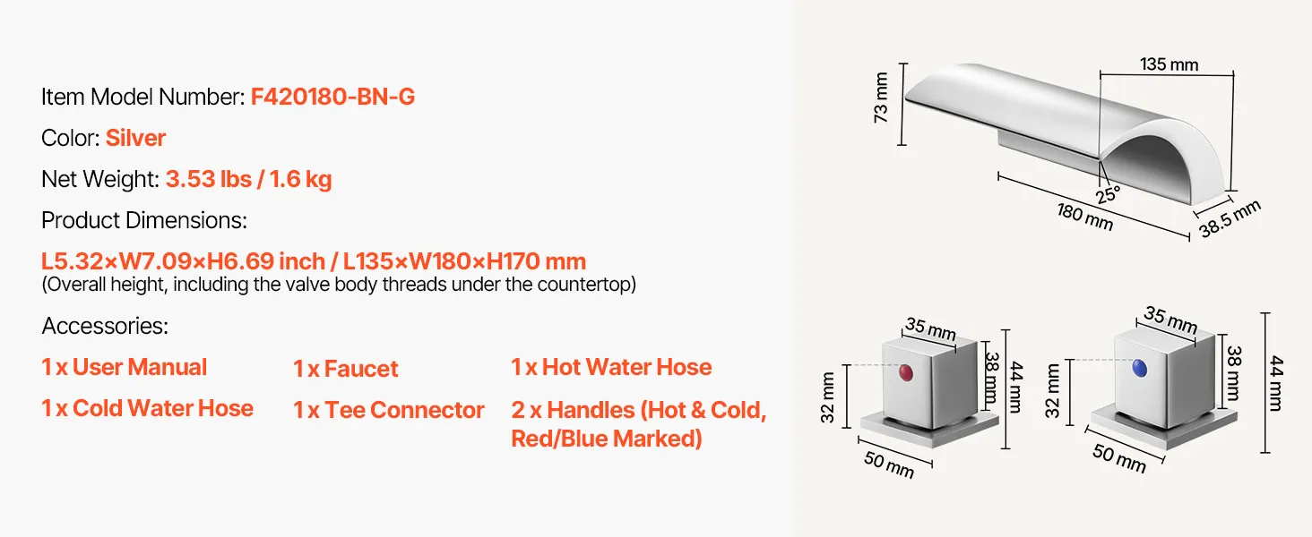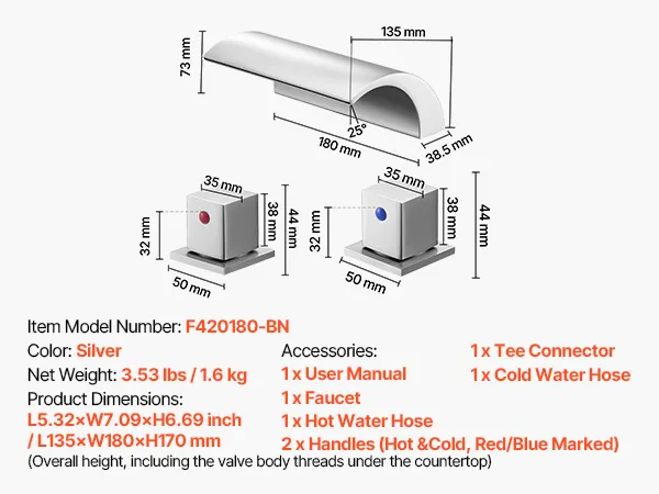 Montaż 3-otworowy: Wyposażona w 3-otworową konstrukcję montażową, ta bateria wannowa montowana na blacie idealnie pasuje do większości wanien. Dzięki średnicy otworu od 1,22 do 1,41 cala (31-35,81 mm) i grubości zlewu od 0,4 do 1,4 cala (10,16 do 35,56 mm), montaż jest szybki i łatwy, zapewniając wyjątkową wygodę.
