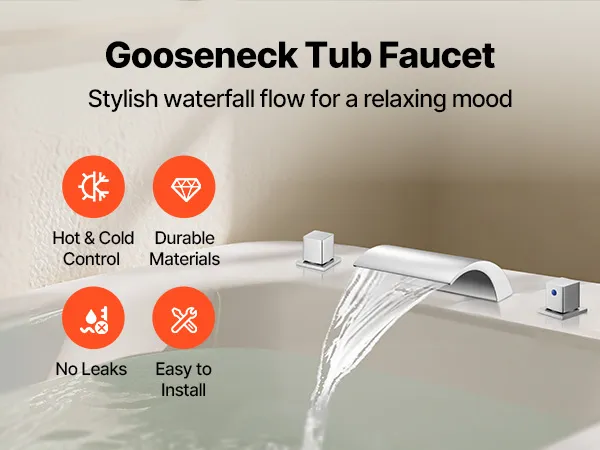 Kran High-Fill: Wysoki przepływ wody wynoszący 2,2 galona na minutę zapewnia szybkie napełnienie 40-galonowej wanny w ciągu 18 minut. Oszczędza to czas i zapewnia płynny i szybki przepływ wody. Ciesz się wygodą i wydajnością szybszej, bardziej relaksującej kąpieli.
