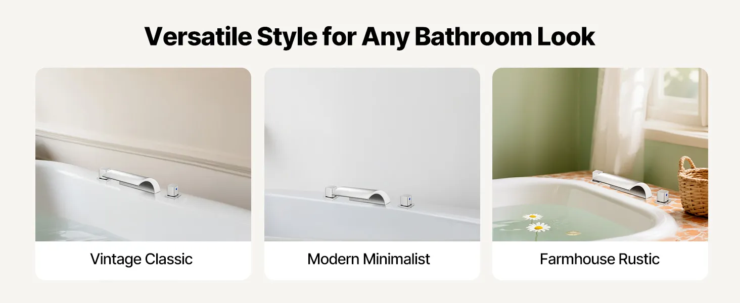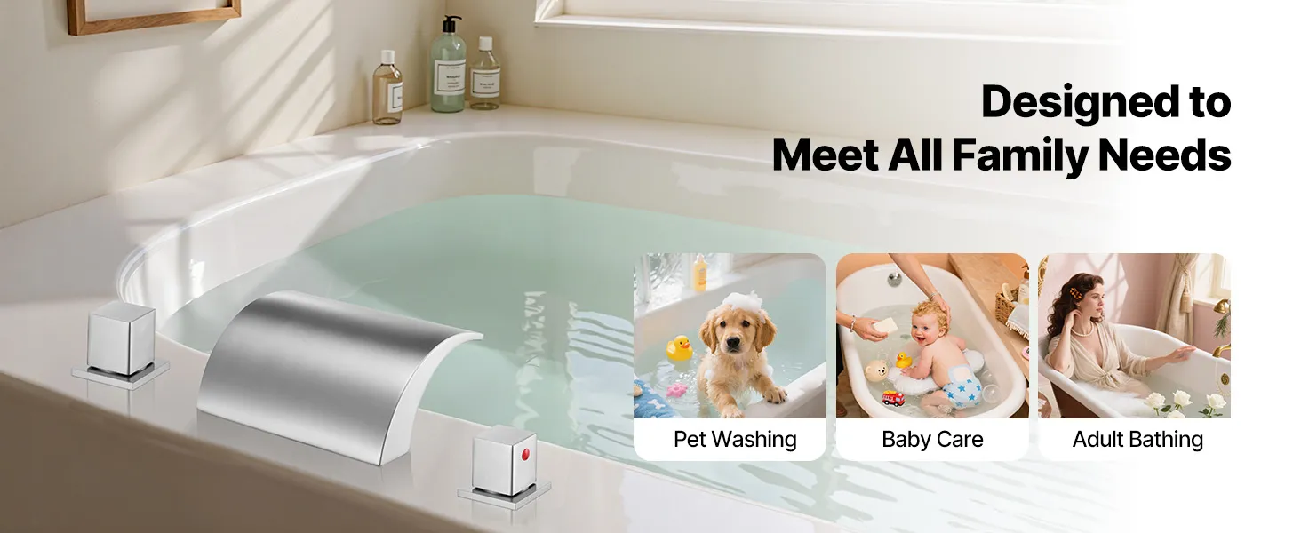 Ten zestaw rzymskiej baterii wannowej został zaprojektowany do codziennego użytku i idealnie sprawdza się w domach wielopokoleniowych. Niezależnie od tego, czy chodzi o mycie zwierząt domowych, kąpiel dorosłych, czy opiekę nad niemowlętami, z łatwością dopasowuje się do Twoich potrzeb i dodaje komfortu codziennym rytuałom, udoskonalając każdy aspekt Twojej łazienki.