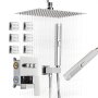 VEVOR Shower Faucet Set, 254 mm Ceiling Mount Rainfall Shower System with 6 Body Jets and 2 in 1 Handheld Spray, Rotatable 3-Function Rain Head System Set, Complete Brass Valve and Trim Kit, Chrome