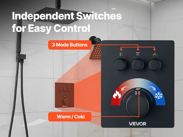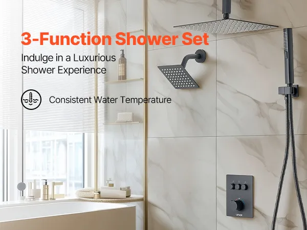 3-funkcyjny system prysznicowy: Nasz zestaw prysznicowy zawiera ręczny prysznic z dwoma ustawieniami, prysznic boczny i deszczownicę. Trzy niezależne przyciski i pokrętło umożliwiają regulację przepływu i temperatury wody. Ukryta rura nadaje nowoczesny styl.