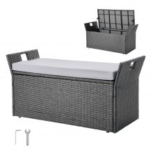 Ławka ogrodowa VEVOR o udźwigu 180 kg, ławka z rattanu PE, skrzynia na siedzisko z poduszką i uchwytem bocznym, ławka ze schowkiem, siedzisko i dekoracja ganku na patio, do ogrodu i na balkon, 104 x 45 x 52 cm