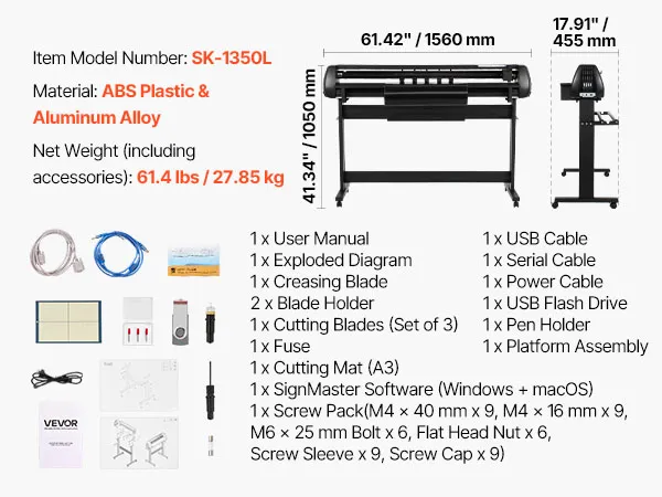 Maszyna do cięcia winylu VEVOR z maks. szerokością podawania 135 cm, podwójnymi ostrzami i wyświetlaczem LED; zestaw ploterów z oprogramowaniem Signmaster, kompatybilny z systemami Windows i macOS