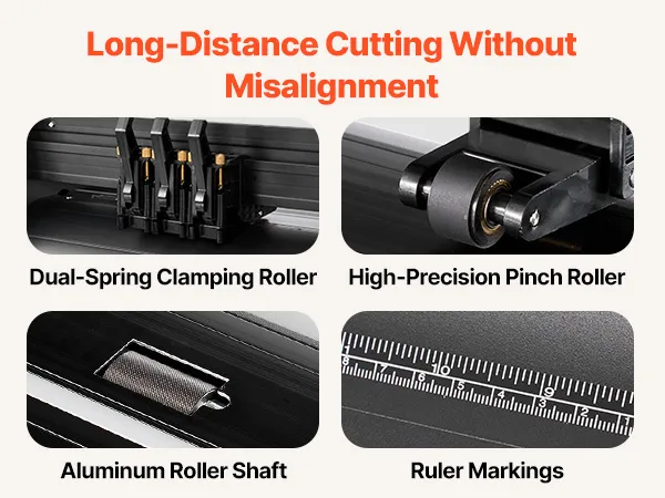 Precyzyjne cięcie: Inteligentne wykrywanie konturów z dokładnością ±0,1 mm i podwójne sprężynowe rolki dociskowe pewnie trzymają nośnik. Nawet w przypadku długich cięć, ploter tnący do winylu zapewnia precyzyjne śledzenie, czyste krawędzie i nieskazitelne detale.