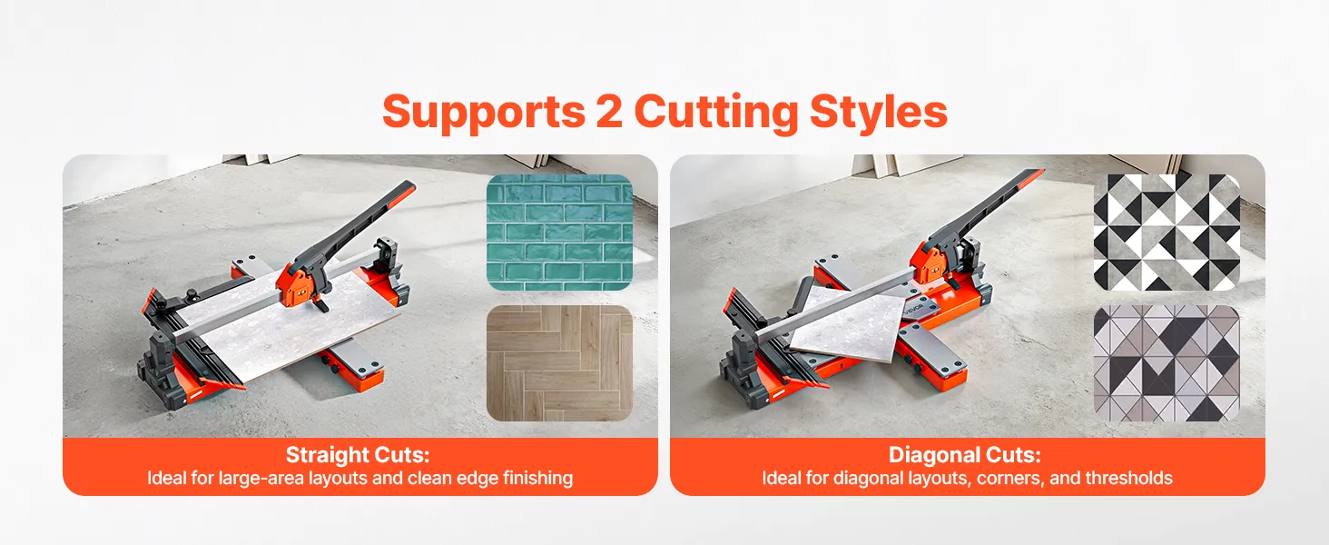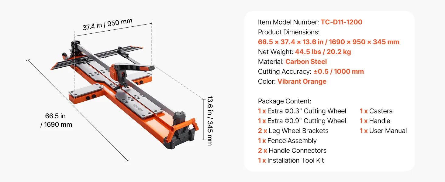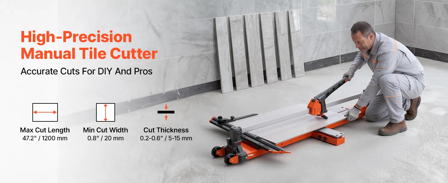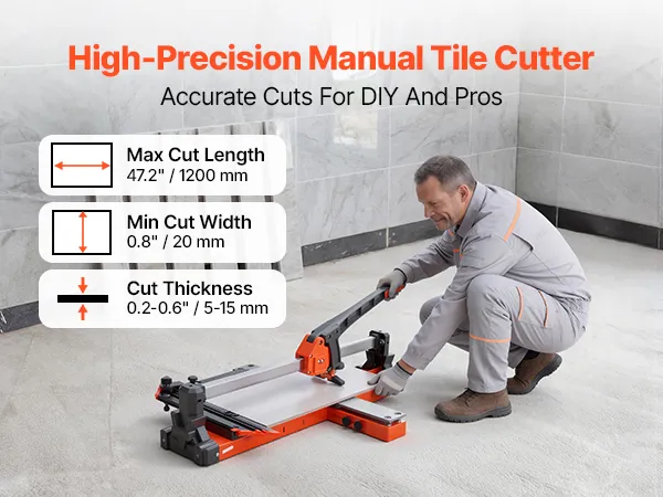 Przecinarka do płytek VEVOR 1200 mm, maszyna do cięcia płytek z podstawą sprężynową i regulowanym ogranicznikiem kąta, tarcza tnąca z węglika wolframu, precyzyjne narzędzie do wyrównywania, do płytek ceramicznych