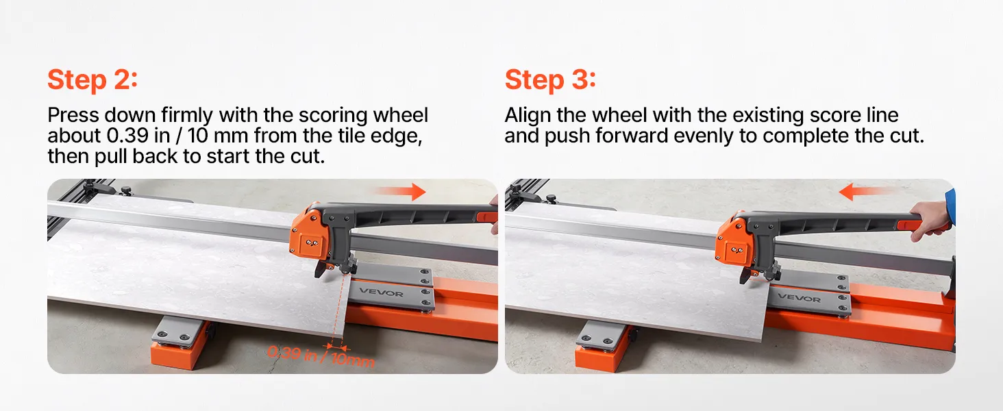 Szybkie wyrównywanie, precyzyjne cięcia: Dzięki zintegrowanej, widocznej linii pomocniczej możesz wykonywać cięcia szybciej. Przecinarka do płytek ściennych pozwala na precyzyjną pracę bez linijki i markera. Skraca to czas przygotowania i zapewnia łatwiejsze, bardziej równe i proste cięcia.
