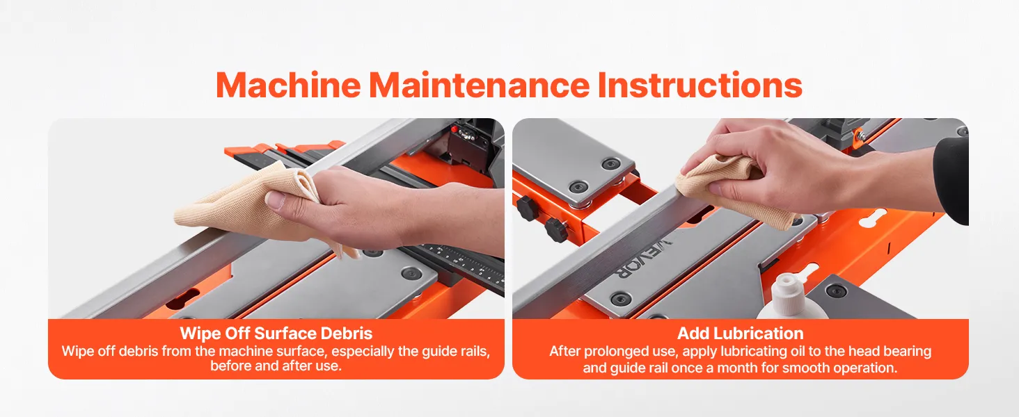 Obsługuje popularne formaty płytek: Przecinarka do płytek jest przeznaczona do cięcia prostego i ukośnego popularnych formatów. Nadaje się do cięcia ceramicznych płytek ściennych i podłogowych o maksymalnej długości cięcia 1200 mm (47,2 cala), minimalnej szerokości cięcia 20 mm (0,8 cala) i grubości cięcia od 5 do 15 mm (0,2 do 0,6 cala).