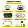 Części konwertera momentu obrotowego VEVOR: koło napędowe, koło napędowe, pokrywa, płyta montażowa, pasek, osprzęt.