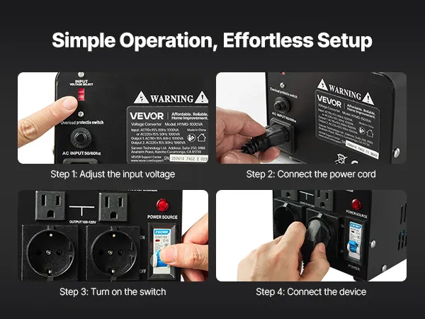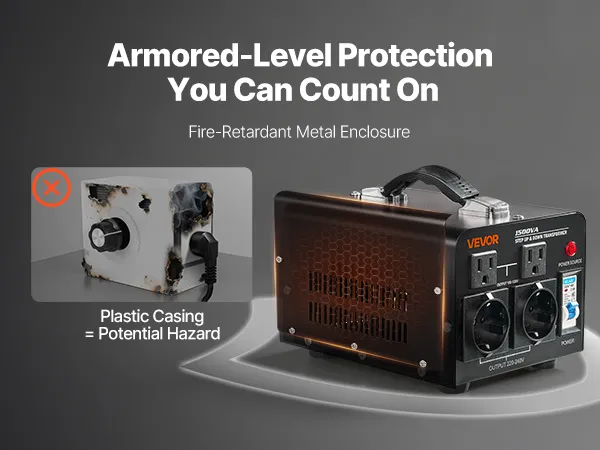 Bezpieczeństwo przede wszystkim: Ten transformator podwyższający/obniżający napięcie posiada podwójne zabezpieczenie: wyłącznik nadprądowy i resetowalny wyłącznik nadprądowy. Chroni Twój sprzęt podczas pracy.