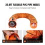 32.8ft flexible pvc pipe hoses for VEVOR portable ventilator, easy to connect, high quality material.