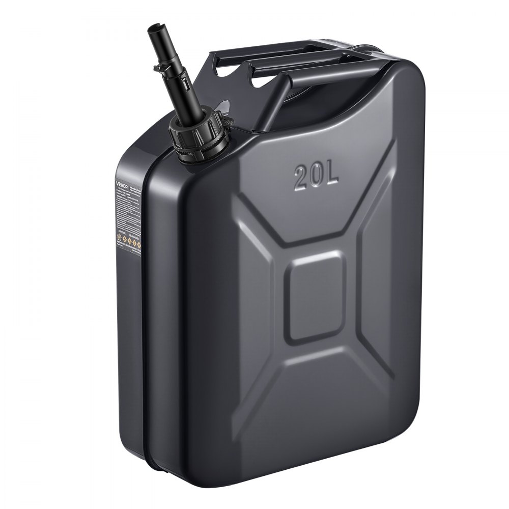 Kanister na paliwo VEVOR metalowy 20 l, kanister na benzynę z dzióbkiem i wygodnym uchwytem, przepływ 6 l/min, szczelny i odporny na korozję, idealny do samochodów, motocykli, quadów i pojazdów UTV, czarny