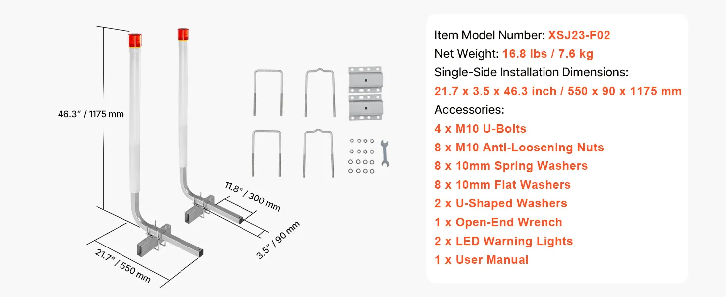 Słupki prowadzące do przyczepy morskiej firmy VEVOR poprawiają bezpieczeństwo i widoczność podczas jazdy nocą. 46-calowy słupek jest wyposażony w jasnoczerwone światła LED. Światła te migają, aby ostrzec innych kierowców. Ten żywy czerwony kolor przyciąga uwagę i poprawia widoczność. Słupki są zaprojektowane tak, aby były widoczne nawet przy słabym oświetleniu, dzięki czemu jazda z przyczepą łodzi w nocy jest bezpieczniejsza. Są zasilane energią słoneczną, więc mogą działać nieprzerwanie. Ich słupki są umieszczone po obu stronach przyczepy. To dodaje dodatkową warstwę bezpieczeństwa. Mocna konstrukcja zapewnia, że słupki pozostają na swoim miejscu. Dzięki temu pozostaną stabilne, nawet jeśli napotkasz trudne warunki podczas holowania łodzi nocą.