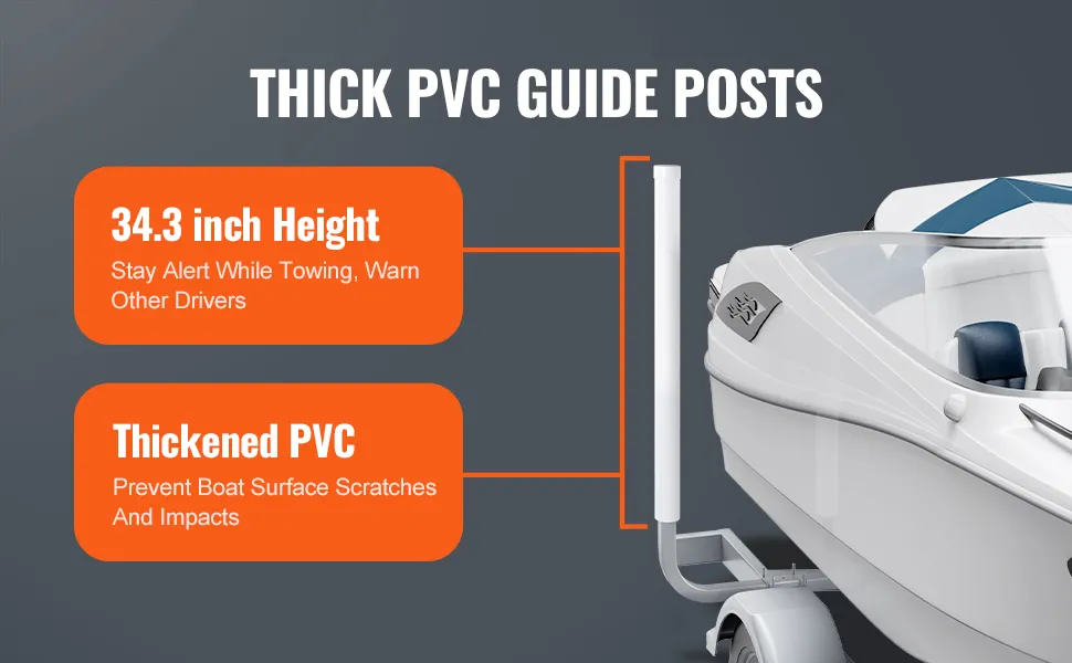Prowadnica przyczepy łodziowej VEVOR oferuje elastyczność dzięki regulowanej szerokości, którą można ustawić na 11,8 cala z każdej strony. Dzięki temu łódź pozostaje wyrównana i nie przesuwa się. Jest idealna do małych łodzi, takich jak skutery wodne, żaglówki i pontony. Regulowana szerokość sprawia, że ładowanie jest szybkie i łatwe, pomagając ustawić jacht we właściwej pozycji. Skraca to czas ładowania i zapewnia płynniejsze wrażenia z pływania łodzią. Te drążki prowadzące są idealne dla osób, które często korzystają ze swoich łodzi i potrzebują niezawodnego wsparcia podczas ładowania.