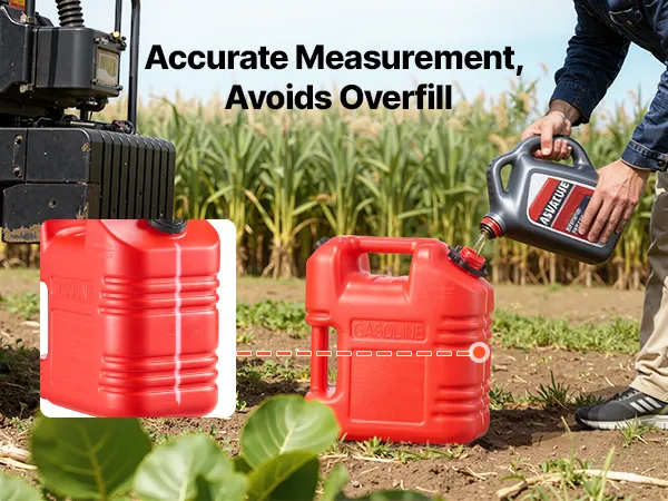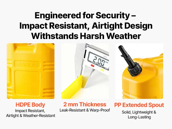 Bezpieczne zamknięcie zapobiegające poluzowaniu: Nie znosisz nieestetycznych wycieków? Ten pojemnik na paliwo ma pierścień uszczelniający, który szczelnie zamyka się nawet podczas jazdy po wyboistych drogach, utrzymując paliwo na swoim miejscu i zapobiegając jego marnowaniu.