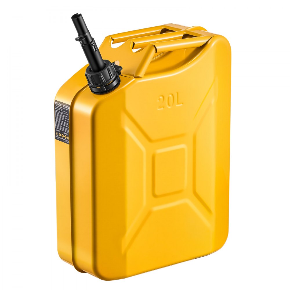 VEVOR Metalowy kanister na benzynę 20 l, kanister z dzióbkiem i wygodnym uchwytem, maks. przepływ 6 l/min, szczelny zbiornik na benzynę do większości samochodów, motocykli, quadów i pojazdów UTV, żółty