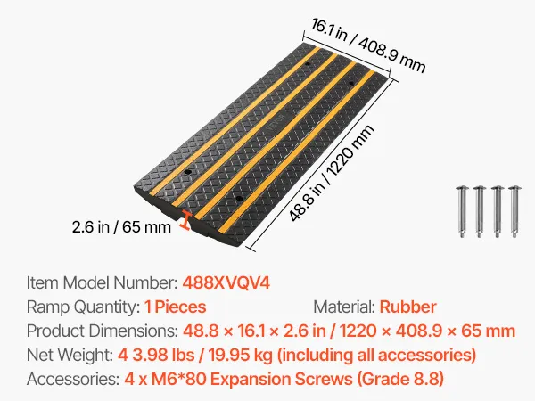 Stabilny montaż: Dzięki wstępnie nawierconym otworom i solidnym kołkom rozporowym, ta gumowa rampa krawężnikowa pozostaje stabilna nawet pod naciskiem i nie ślizga się, nawet przy dużym natężeniu ruchu lub wibracjach. Wystarczy zamontować i zapomnieć o niej.