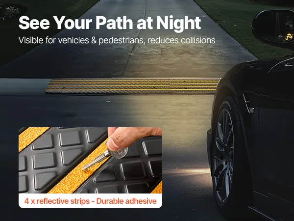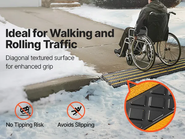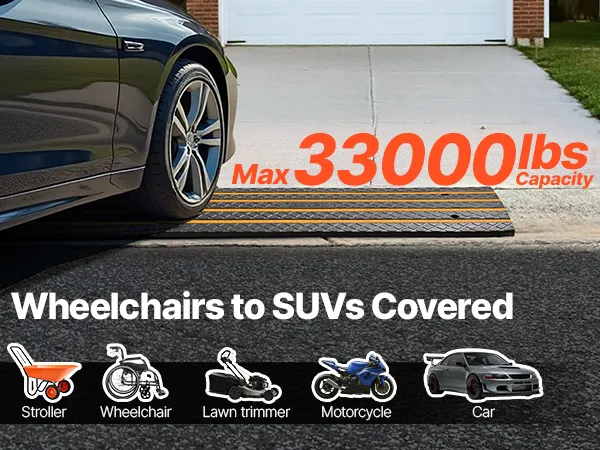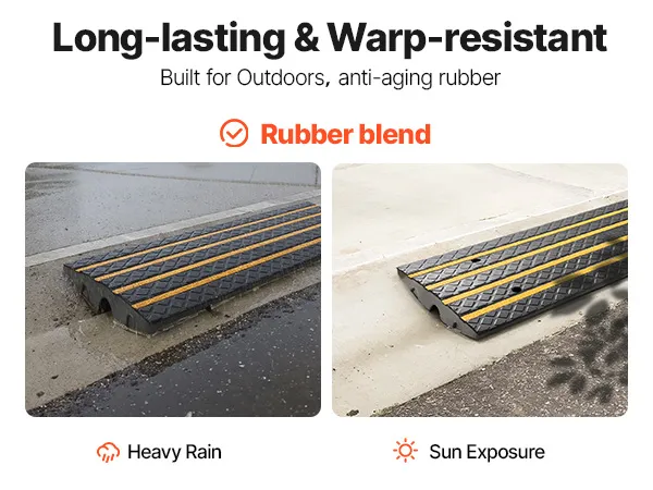 Trwałość w każdych warunkach pogodowych: Ta gumowa rampa podjazdowa jest odporna na słońce i warunki atmosferyczne oraz nie pęka ani nie odkształca się pod wpływem słońca lub deszczu. Łatwa do czyszczenia po pracach ogrodowych lub kontakcie z olejem – odpowiednia na każdą porę roku.
