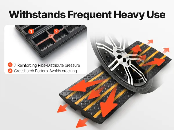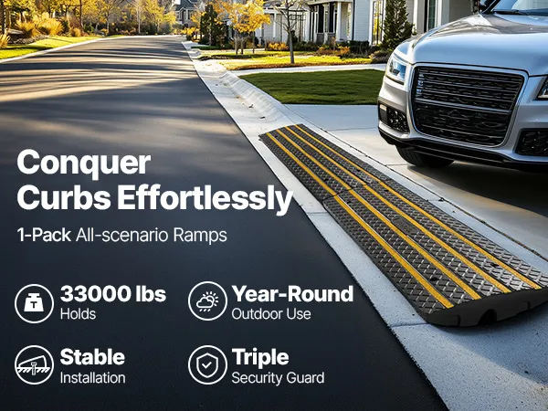 Zabezpiecz swój pojazd: Ta rampa krawężnikowa wytrzymuje obciążenie do 15 ton. Wzmocnione żebra i krzyżowy wzór równomiernie rozprowadzają nacisk, chroniąc opony i podwozie przed uszkodzeniami. Idealna do codziennego użytku w SUV-ach, pickupach i innych pojazdach.