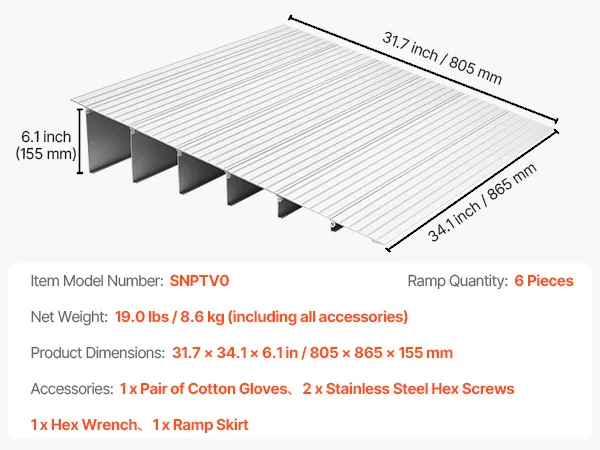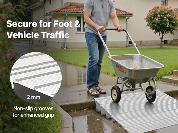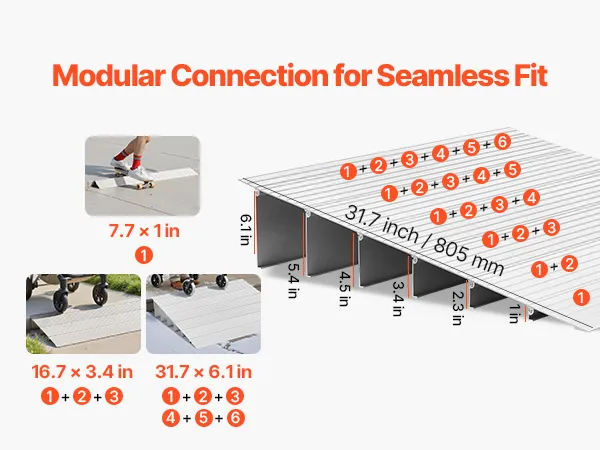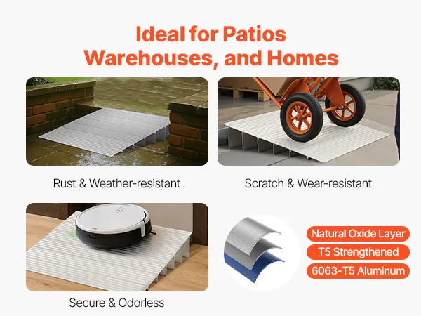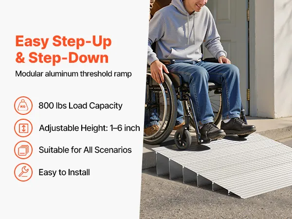 Elastyczne dopasowanie: Ta rampa pasuje do standardowych progów o wysokości 6 cali (15,24 cm) i można ją wydłużyć, aby dopasować do innych wysokości. Koniec z zablokowanymi kółkami – tylko płynne przejścia, które ułatwiają codzienne korzystanie.