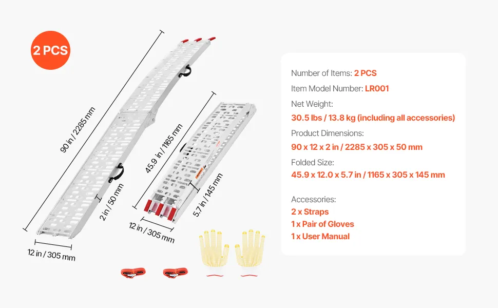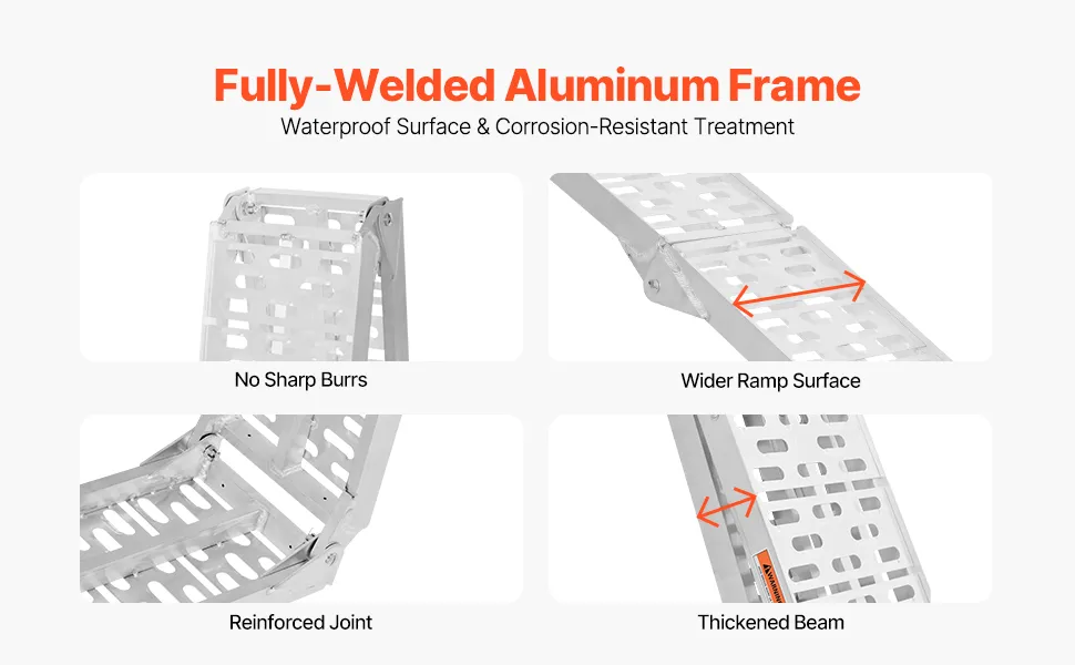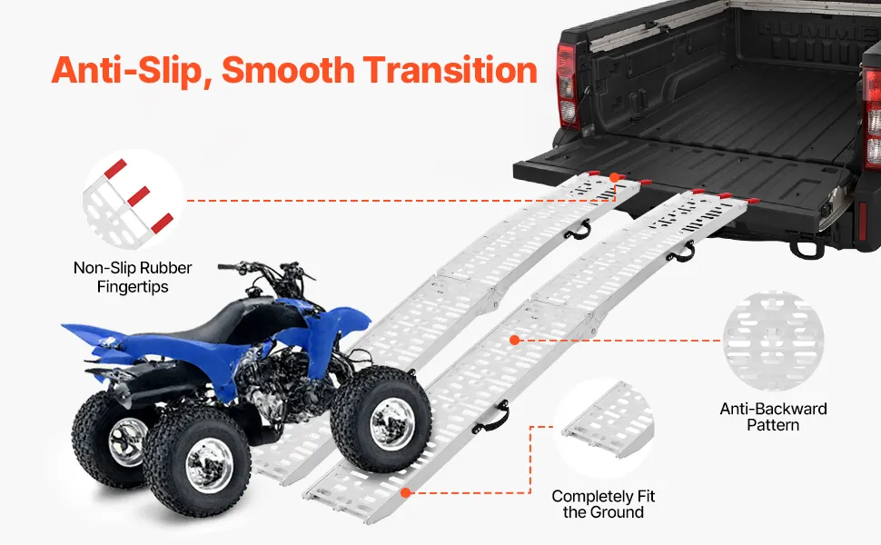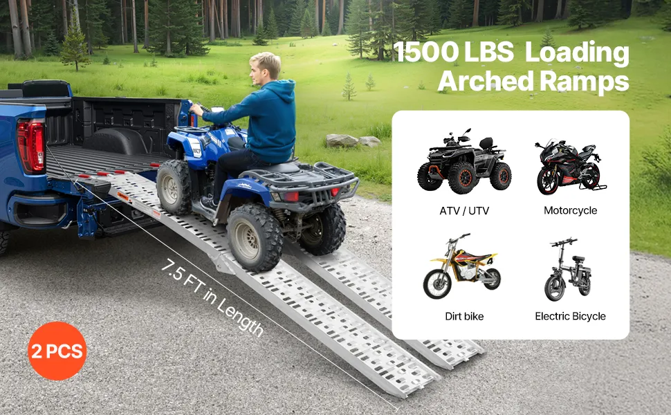 Nośność 680 kg: Ta zakrzywiona rampa wytrzymuje łączną ładowność do 1500 funtów (680 kg) i charakteryzuje się lekką, a jednocześnie wytrzymałą konstrukcją. Zestaw 2 elementów idealnie nadaje się do transportu pojazdów terenowych, pojazdów UTV, motocykli, kosiarek do trawy i skuterów elektrycznych