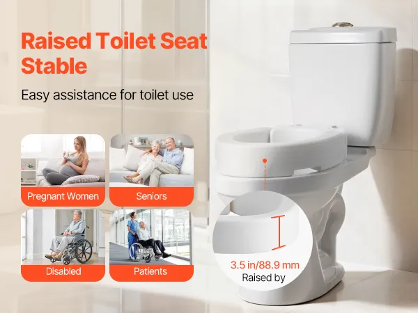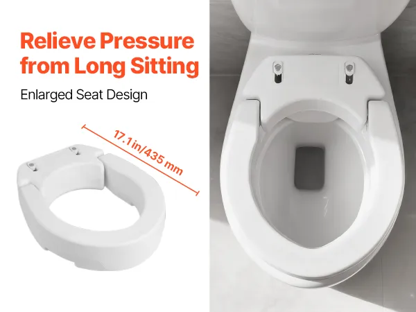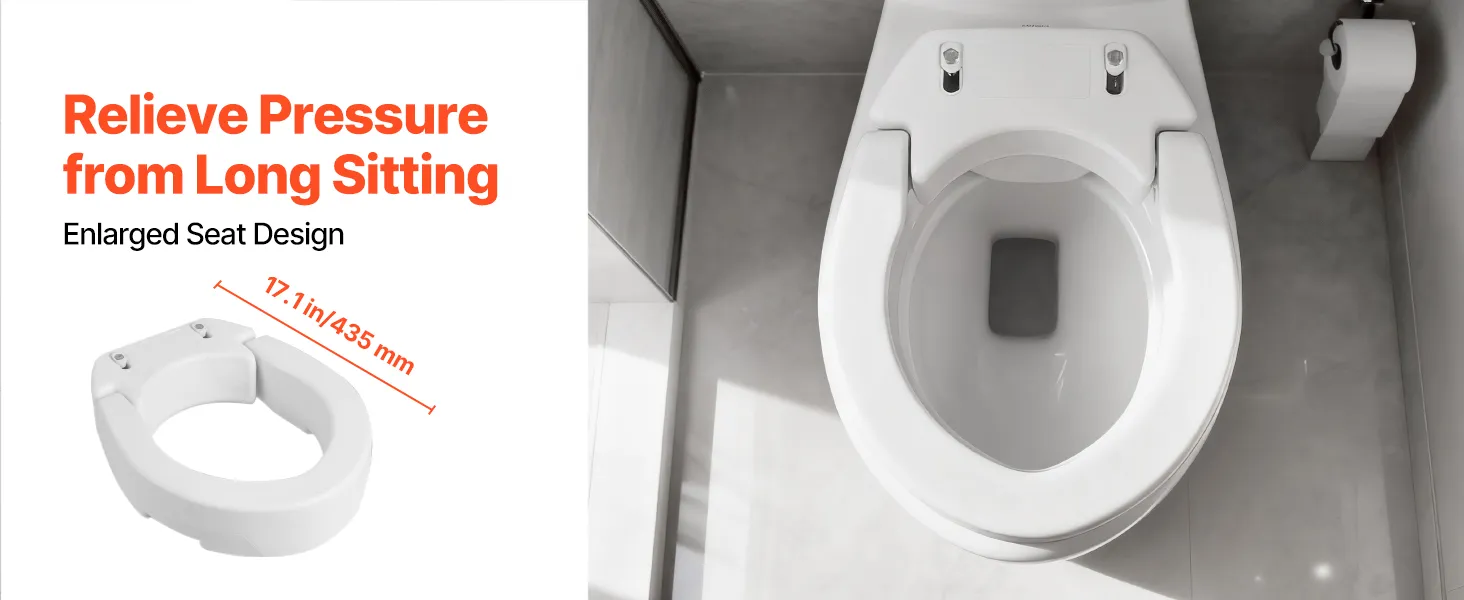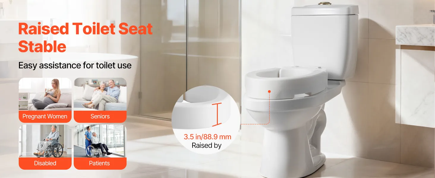 Podwyższa deskę sedesową o 88,9 mm: Nasza podwyższona deska sedesowa podnosi toaletę o 3,5 cala (88,9 mm), zapewniając większy komfort. Jest idealna dla kobiet w ciąży, seniorów, pacjentów i osób niepełnosprawnych, zmniejszając nacisk na biodra, kolana, nogi i ścięgna Achillesa.