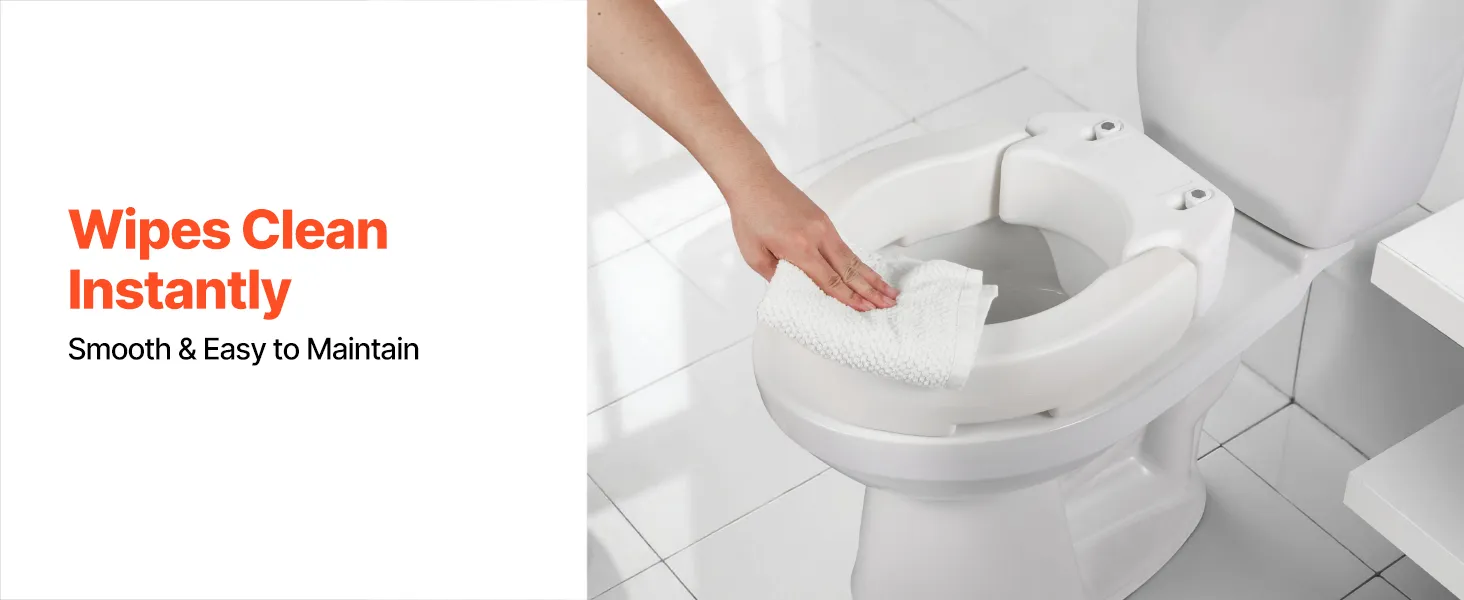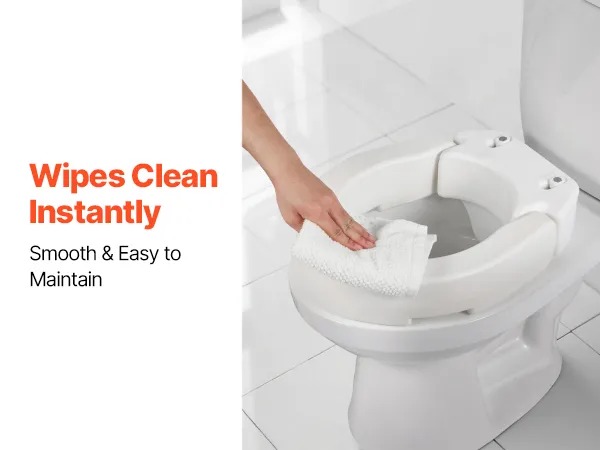 Łatwe czyszczenie: Ta podwyższona deska sedesowa ma wodoodporną i odporną na wilgoć powierzchnię, co ułatwia czyszczenie. Rama i łączenia są odporne na rdzę, dzięki czemu deska pozostaje czysta i stabilna przez długi czas użytkowania.