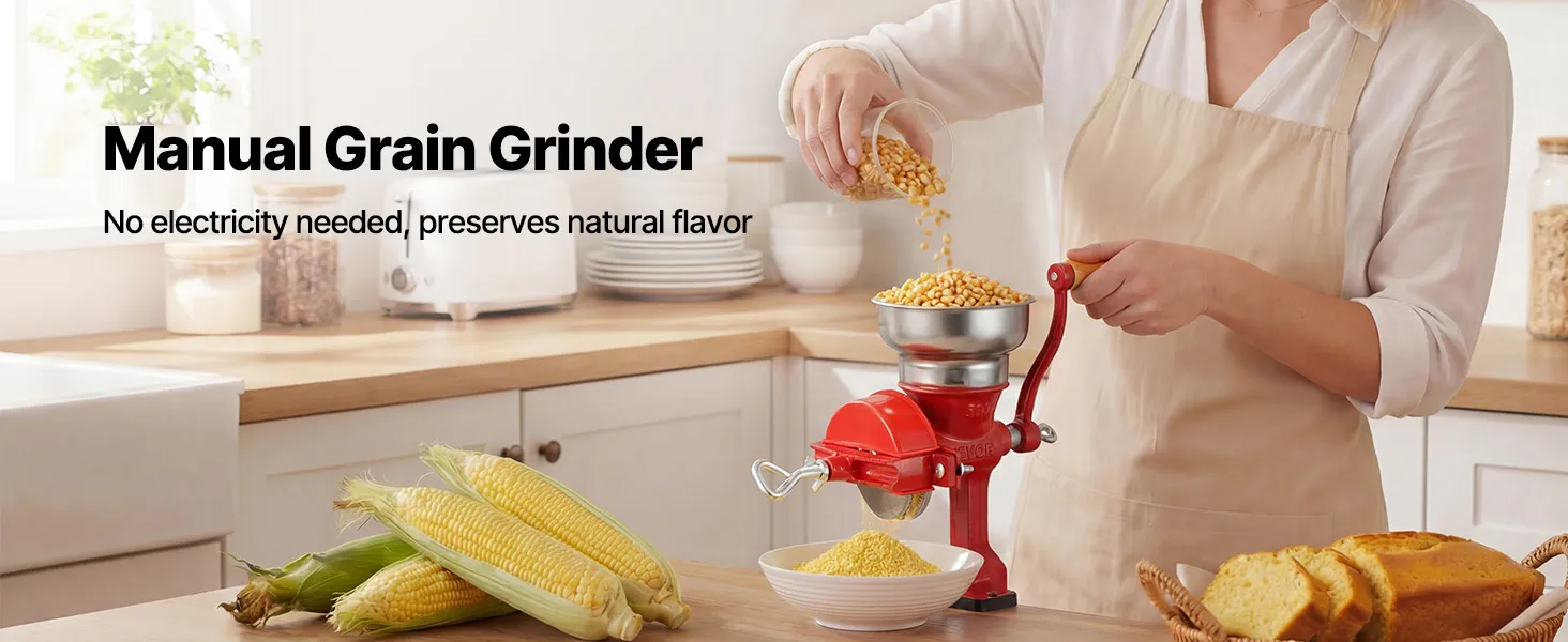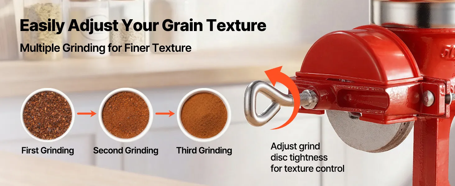 Zachowaj naturalny aromat: Ten ręczny młynek do zboża firmy VEVOR z niskoprofilowym zasobnikiem działa bez zasilania elektrycznego i zapewnia równomierne mielenie bez generowania ciepła. Dzięki temu zachowuje naturalny aromat i składniki odżywcze ziarna, zapewniając świeższe i bardziej aromatyczne ziarno.