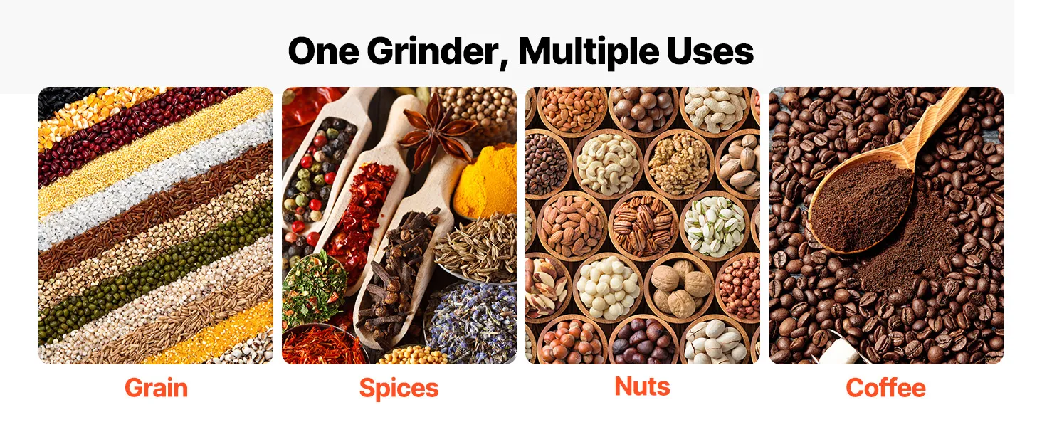 Wszechstronne zastosowanie: Nasz ręczny młynek do zboża nadaje się do mielenia zbóż, kukurydzy, przypraw, orzechów, ziaren kawy i wielu innych składników. Praktyczne i wszechstronne narzędzie do przygotowywania potraw w kuchni, pieczenia i parzenia.
