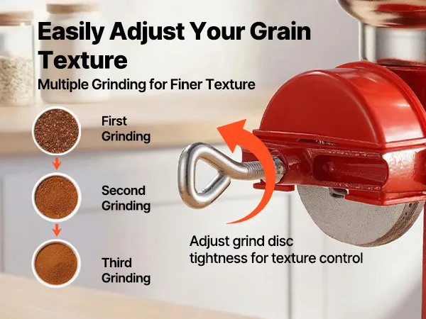 Regulowana grubość: Konsystencję można łatwo kontrolować, regulując nacisk tarczy mielącej – im ciaśniej, tym drobniejszy rezultat. Aby uzyskać jeszcze drobniejszą konsystencję, wystarczy zmielić kilka razy w razie potrzeby.