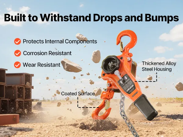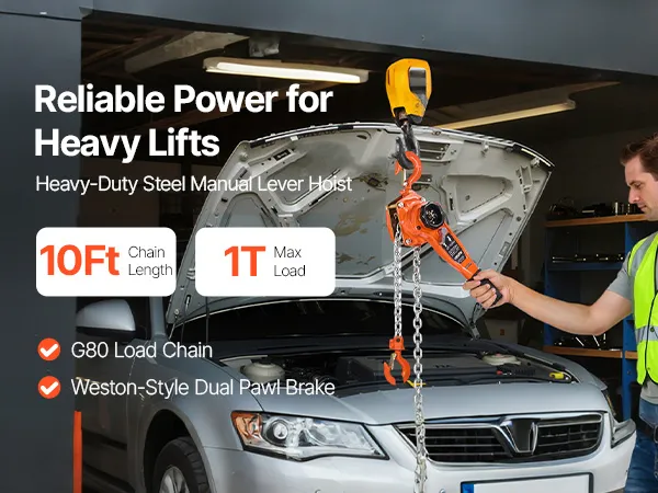 Ta ręczna wciągarka dźwigniowa z ocynkowanym łańcuchem G80 nadaje się do wymagających zadań, takich jak przenoszenie kłód, maszyn lub stalowych belek. Dwa hamulce zapadkowe typu Weston i szczelina na łańcuch zapewniają płynną i bezpieczną pracę.