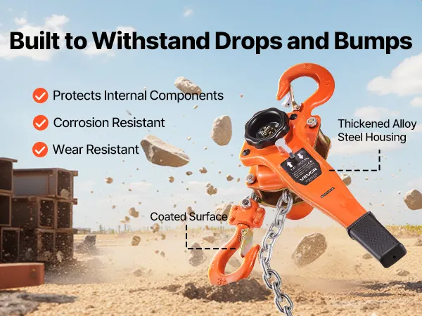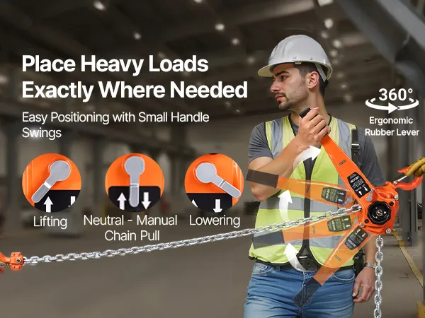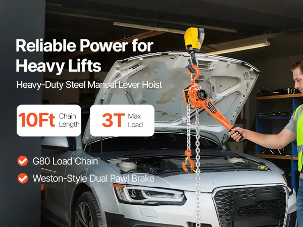 Maks. udźwig 3 ton: Ten ręczny wciągnik dźwigniowy charakteryzuje się odporną na wstrząsy i pęknięcia stalową konstrukcją, która pozwala jednej osobie bez wysiłku podnosić ładunki o masie do 3 ton/6600 funtów. Idealny do wyciągania powalonych drzew, podnoszenia stalowych belek, maszyn i części silników.