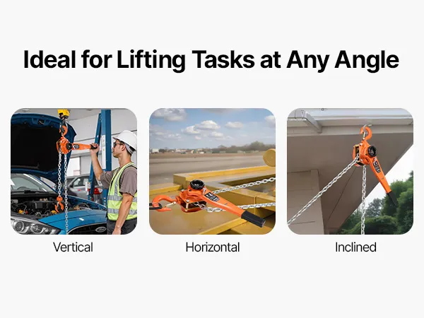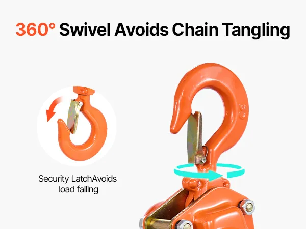 Płynna praca: Ten wciągnik łańcuchowy wyposażony jest w ulepszoną prowadnicę, która zapewnia płynne podnoszenie bez zacięć. Obrotowy hak 360° umożliwia bezpieczne użytkowanie pod różnymi kątami, zapobiegając skręcaniu i zwiększając wydajność w wymagających zastosowaniach dźwigowych.