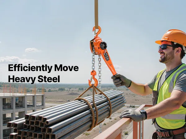 Ta ręczna wciągarka dźwigniowa z ocynkowanym łańcuchem G80 nadaje się do wymagających zadań, takich jak przenoszenie kłód, maszyn lub stalowych belek. Dwa hamulce zapadkowe typu Weston i szczelina na łańcuch zapewniają płynną i bezpieczną pracę.