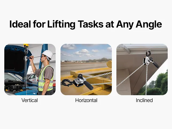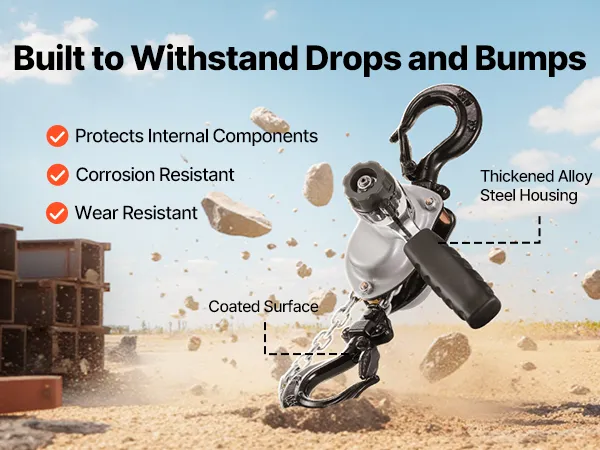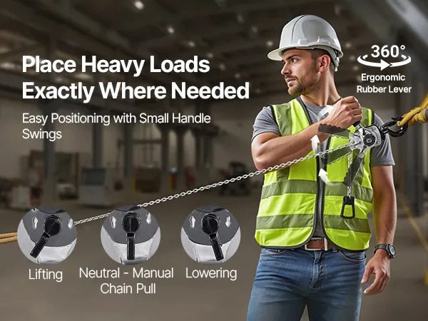 Płynna praca: Ten wciągnik łańcuchowy wyposażony jest w ulepszoną prowadnicę, która zapewnia płynne podnoszenie bez zacięć. Obrotowy hak 360° umożliwia bezpieczne użytkowanie pod różnymi kątami, zapobiegając skręcaniu i zwiększając wydajność w wymagających zastosowaniach dźwigowych.