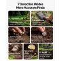 Nasz wykrywacz metali jest w pełni wodoodporny (IP68), pracuje ze stabilną częstotliwością 7,2 kHz i oferuje głębokość wyszukiwania 304,8 mm. Pozwala to na precyzyjną lokalizację obiektów w glebie, piasku lub trawie. Regulowany uchwyt dopasowuje się do różnych rozmiarów ciała.