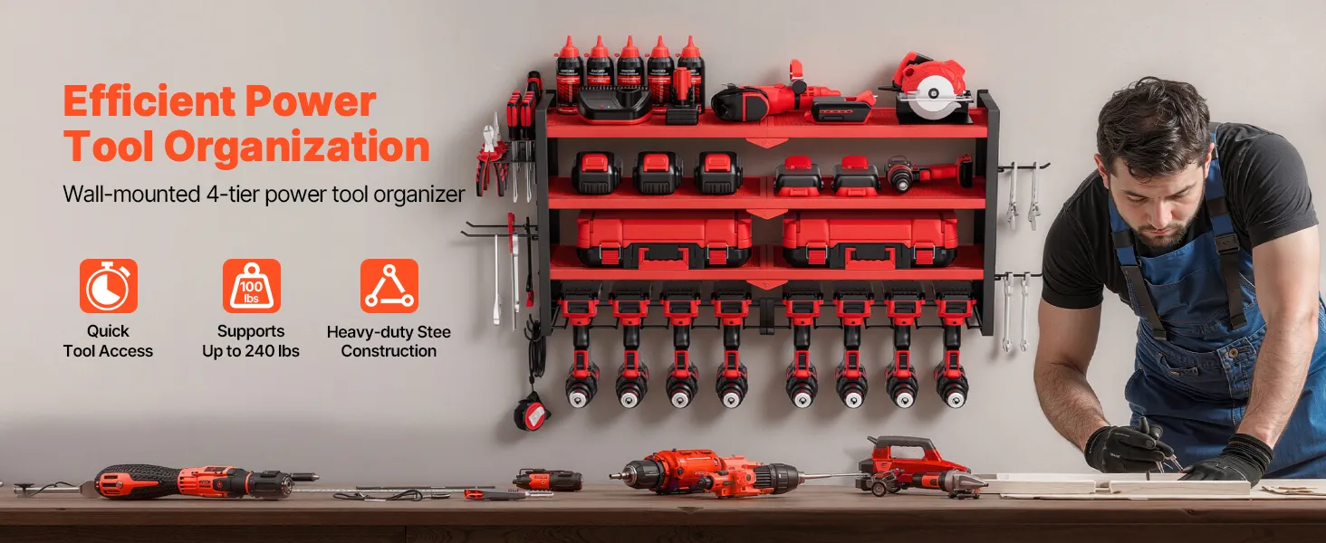 4-poziomowy organizer na elektronarzędzia: Utrzymuj narzędzia w porządku i pod ręką